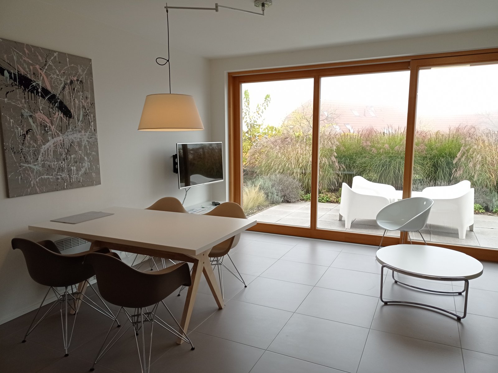 K dlouhodobému pronájmu nabízíme velmi vkusně vybavený apartmán 3+kk v obci Pavlov. Jedná se o přízemní, moderně zařízenou nemovitost se dvěma ložnicemi, koupelnou s WC, technickou místností s pračkou a hlavní obytnou částí, která slouží jako obývací pokoj, kuchyně i jídelna. Celý byt je propojen s navazující terasou a okrasnou zahradou francouzskými okny, která celý prostor příjemně prosvětlují a zároveň dodávají celému interiéru neopakovatelnou atmosféru v souladu s okolní přírodou. Apartmán bude volný k pronájmu od 01.10.2025.